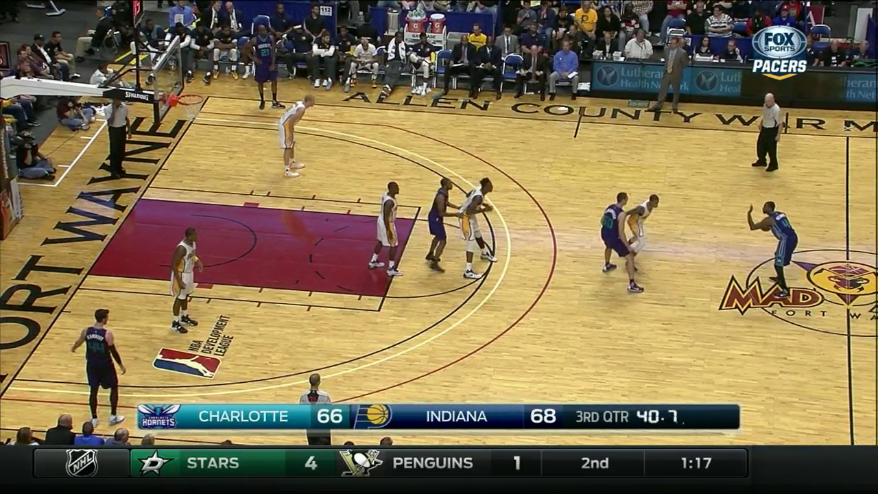 But that also leaves Myles Turner on Aaron Harrison, who has already visions of making a three-pointer in his mind as he looks for a spot behind the three-point line.